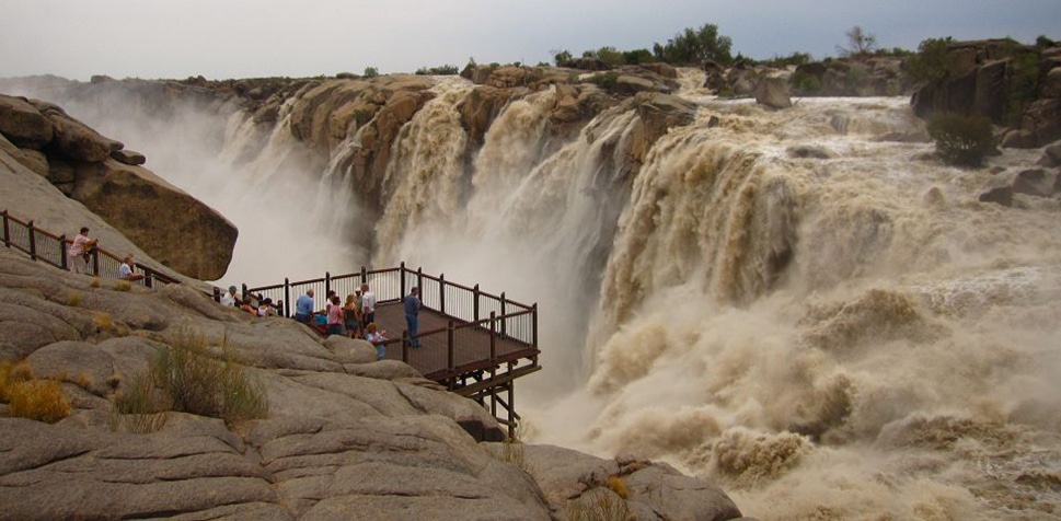 Augrabies Falls National Park fu proclamato nel 1966 e copre una superficie di circa 500km². Quando il fiume è in piena, di solito da febbraio ad aprile, le cascate raggiungono il loro massimo fulgore.